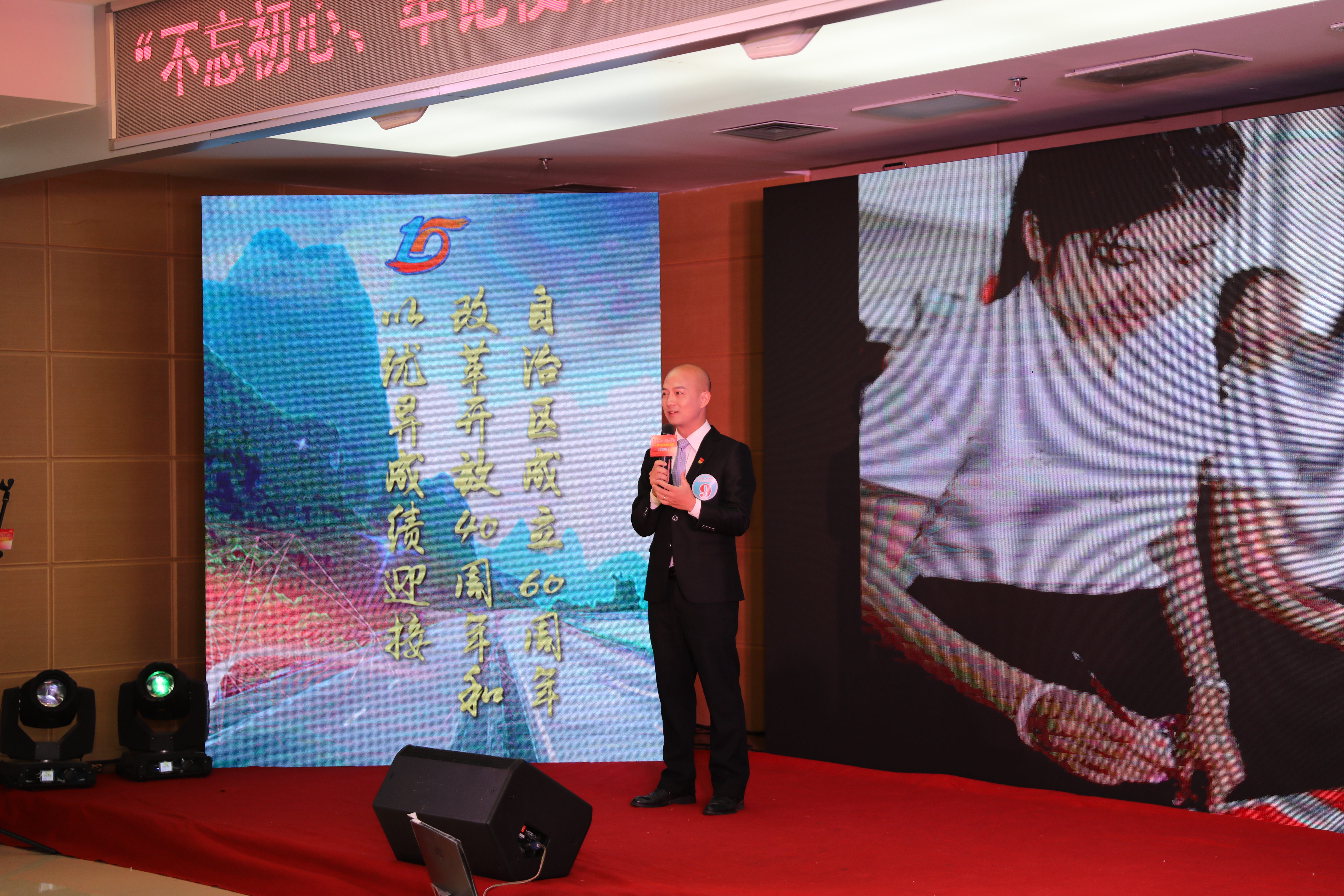 比賽邀請了自治區(qū)國資委宣傳群工處處長、黨委宣傳部部長吳雙平和廣西電視臺(tái)李力、高路、王繼修3位老師擔(dān)任主評委并為獲獎(jiǎng)選手頒獎(jiǎng)。集團(tuán)公司領(lǐng)導(dǎo)唐咸秋、翁科出席活動(dòng)現(xiàn)場并為獲獎(jiǎng)選手頒獎(jiǎng)。集團(tuán)公司總部和直屬各企業(yè)員工代表近250人觀看了決賽。