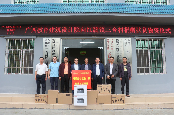 4月18日,廣西教育建筑設(shè)計院有限公司黨支部書記、執(zhí)行董事梁志率隊到忻城縣紅渡鎮(zhèn)三合村開展扶貧慰問,并向三合村委捐贈了一批價值2萬元的辦公設(shè)備,用于駐村扶貧工作隊員開展扶貧工作。教育設(shè)計院副院長鄧江,忻城縣委常委、縣人民政府副縣長王華,縣政協(xié)副主席、紅渡鎮(zhèn)黨委書記羅健康同時參加捐贈儀式。